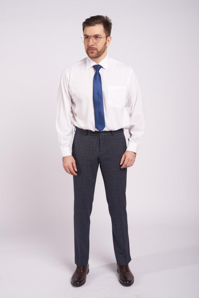 Классические темно-серые мужские брюки от бренда VAN CLIFF collection. Брюки выполнены из фактурной ткани в клетку с содержанием вискозы. Брюки слегка зауженного силуэта со стрелками. Брюки имеют два боковых кармана и задний карман с застежкой на пуговицу, на поясе предусмотрены шлевки для ремня.