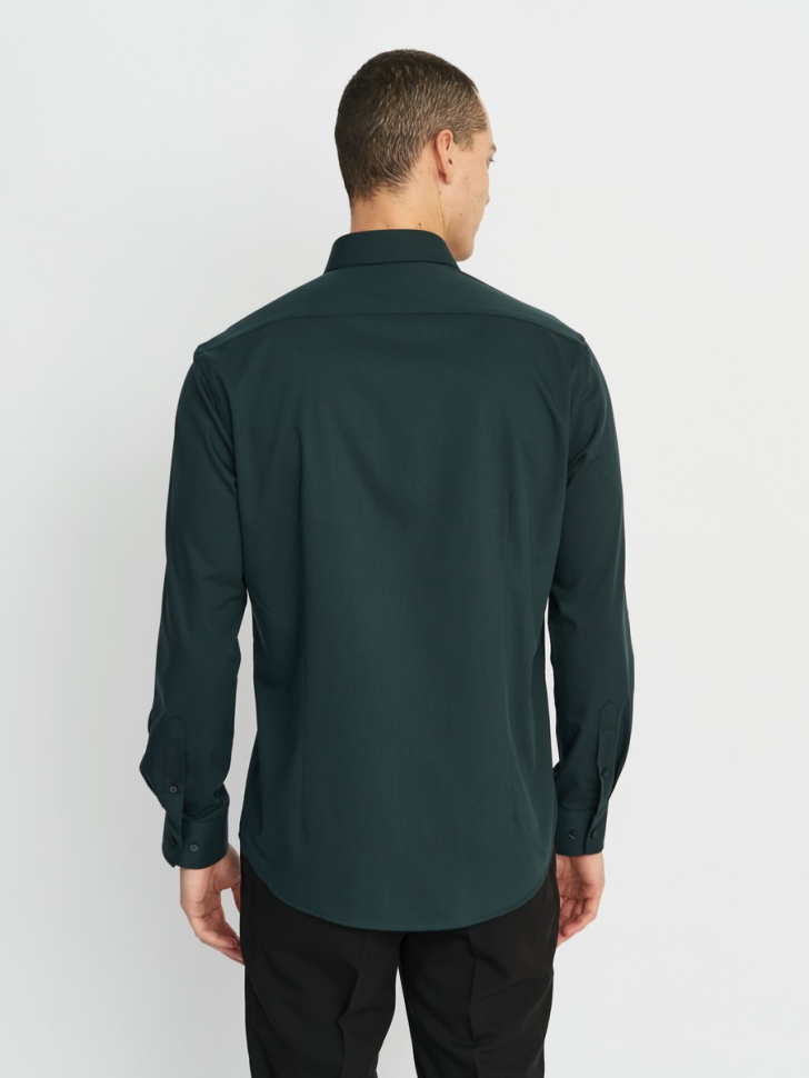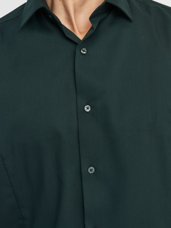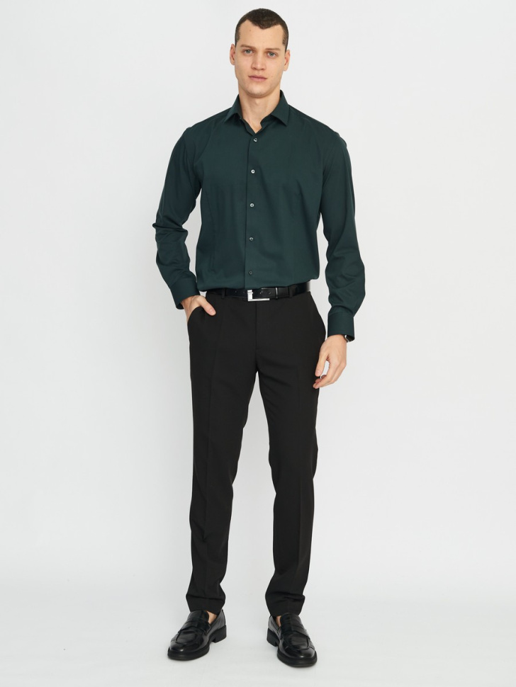 Классическая мужская сорочка с длинным рукавом от бренда GROSTYLE. Цвет – однотонный изумрудный. Модель c приталенным силуэтом Slim fit. Манжет стандартный на пуговицах. Комфортная эластичная ткань со спандексом тактильно приятна, легко гладится и быстро сохнет. Ваша идеальная рубашка на все случаи жизни.