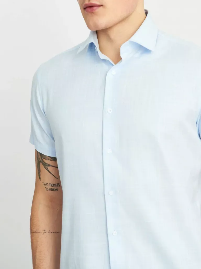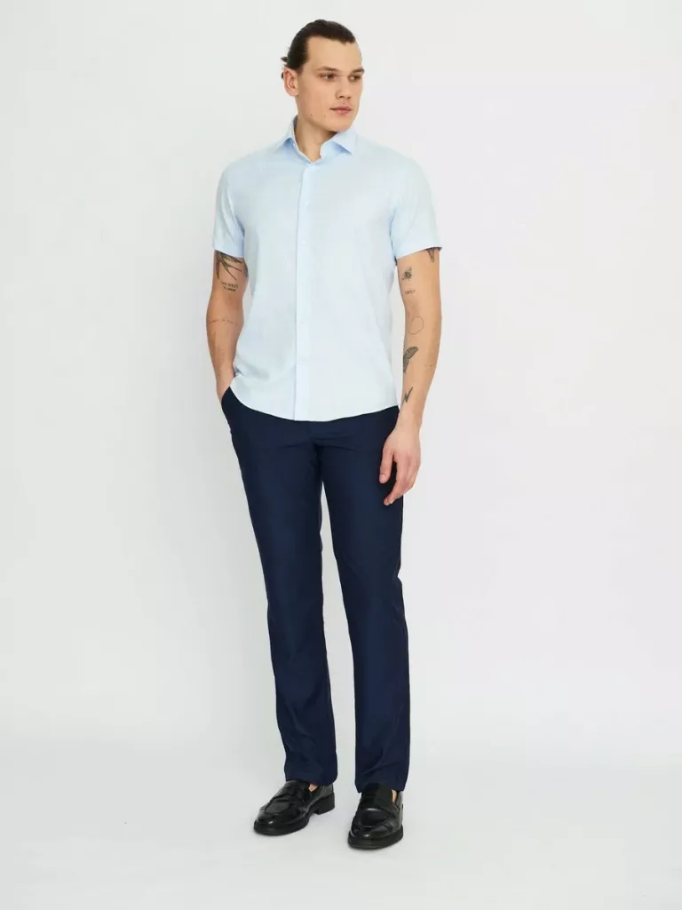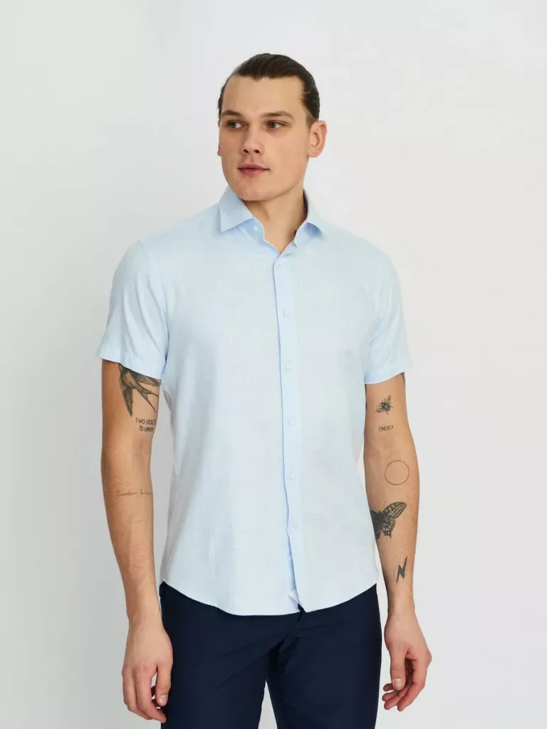 Мужская рубашка с коротким рукавом из натуральной ткани — отличный выбор для летнего гардероба. Она прекрасно сочетается с брюками, джинсами или шортами и лаконично дополнит ваш образ в любой ситуации: от офиса до путешествий.
